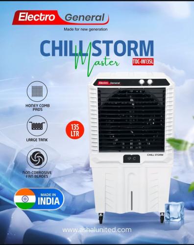 استمتع بتبريد مثالي للمساحات الكبيرة مع مكيف الكترو جنرال الصحراوي بسعة خزان ضخمة 135 لتر وقوة محرك 195 واط. يوفر تدفق هواء بارد قوي مع مستوى ضجيج منخفض ليمنحك راحة تامة. مزود بـ 3 سرعات تشغيل، فلتر عالي الكفاءة لتنقية الهواء، ودرج أمامي لوضع الثلج لتعزيز البرودة. تصميم عملي مزود بعجلات لسهولة الحركة ومصنوع من خامات عالية الجودة لضمان كفاءة تشغيل طويلة الأمد.